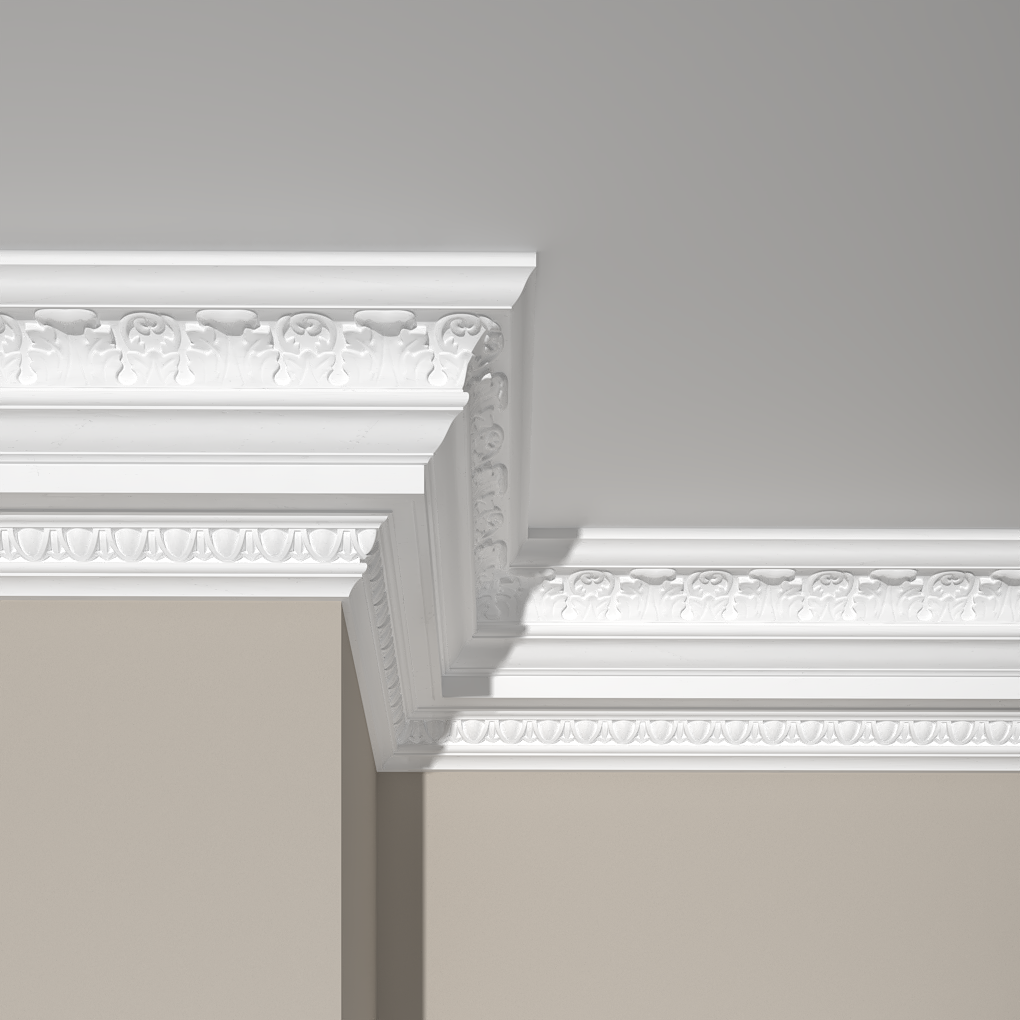 A traditional large enriched plaster cornice with Acanthus leaf and Egg & Dart decoration. Locker & Riley’s plaster mouldings are all handmade by our highly skilled artisans utilising the finest materials and traditional methods. For our installation service, please enquire for further details enquiries@lockerandriley.com